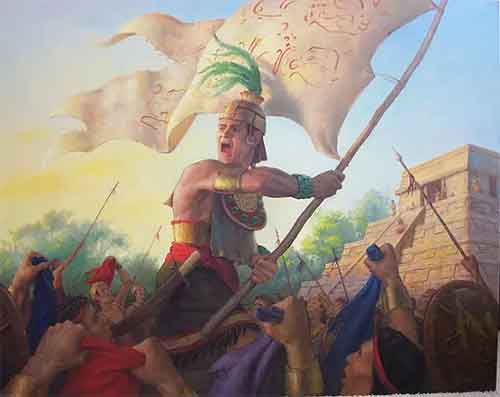 Moroni en su capa rasgada escribió lo siguiente «En memoria de nuestro Dios, nuestra religión, y libertad, y nuestra paz, nuestras esposas y nuestros hijos» y la ondeo como un estandarte y aglutinó alrededor a un ejército en defensa de sus libertades y sus familias. No escribió Zarahemla en el estandarte, no había una palabra que representara al conjunto, todavía no había un patriotismo como tal, vemos a la nación en gestación.